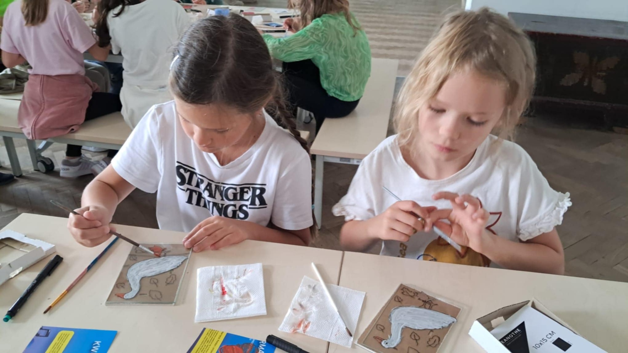 - Na szkle malowane...24.09.2025 07:53Klasa 3a odwiedziła Muzeum Etnograficzne. Podczas lekcji muzealnej dzieci oglądały wystawę „Dwie dusze twórcy ludowego” oraz wysłuchały historii powstawania obrazów malowanych na szkle. Poznały również technikę wykonania takiej pracy i samodzielnie wykonały swój obraz. Powstały bardzo twórcze i piękne dzieła sztuki, które zapewne już teraz wiszą na honorowym miejscu w pokoju każdego ucznia.